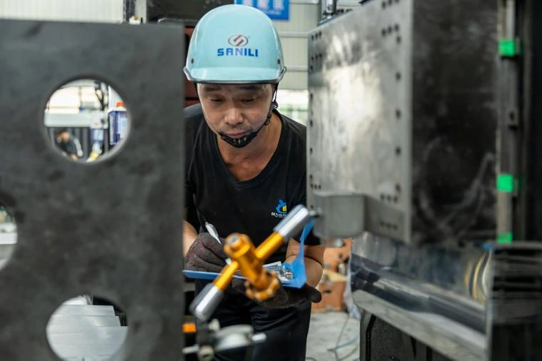3. Z-axis گائیڈ ریل اور ورک ٹیبل کے درمیان کھڑے ہونے کا پوری مشین سے معائنہ کریں، 0.01 ملی میٹر کے اندر درستگی کو یقینی بنائیں۔